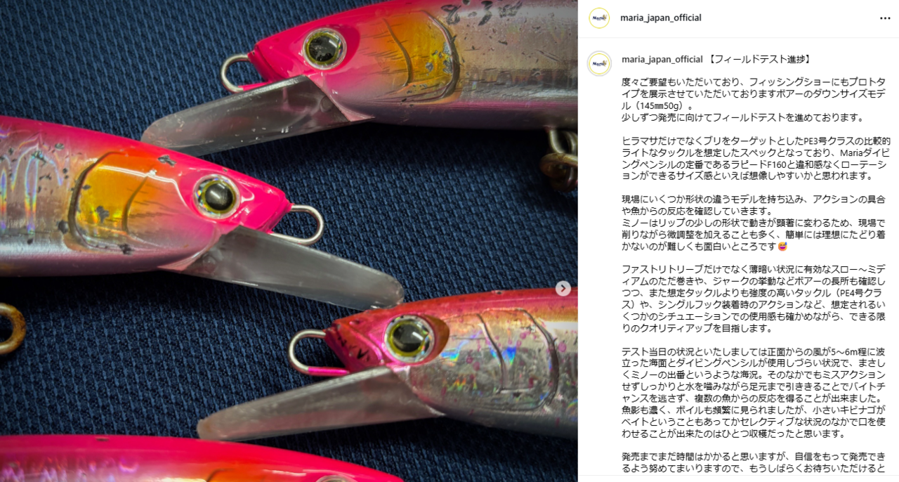 さらにMariaの公式instagramをご覧の方は気付いたかも知れませんが、ボアーの145mm サイズを現在開発中!これはタマンにドンピシャでしょう、、、お楽しみに。