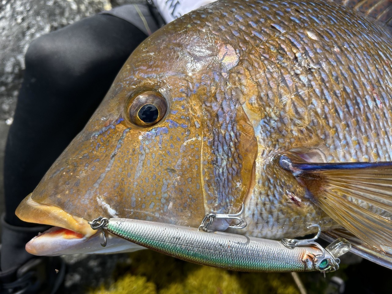 ベタ凪ピーカンでも潮が動いていれば反応は得られますが、少し波っ気があって、サラシが広がるような状態が活性も高くオススメです。