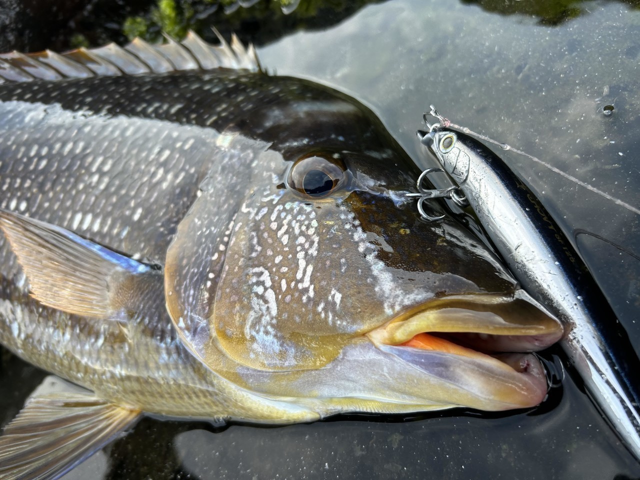 強い水押しで遠くのターゲットにも強烈にアピール!僕も何度かトップでタマンの強烈なバイトを得ていますが、いまだキャッチには至らず。今年こそは、と意気込んでいます。(笑)