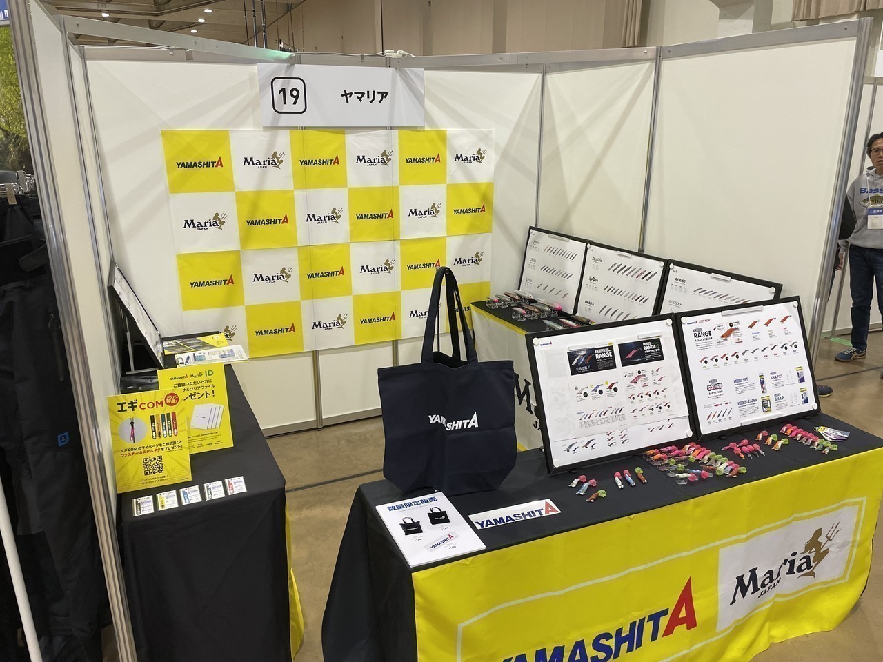 実釣のあとは「サッポロルアーフェスタ」の会場へ!YAMASHITAブースには、朝から熱心なアングラーの皆さんがたくさん足を運んでくれました。