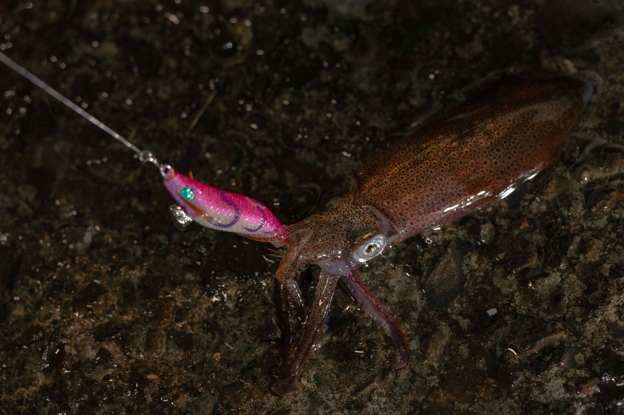 その後、同行者がボトム付近でマメイカを1杯追加しましたが、後が続きません。魚のアタックに邪魔されながら、本命っぽいアタリを2度逃し…これこそがライトエギングの深さ。厳しいからこそ、一杯の価値があります。
