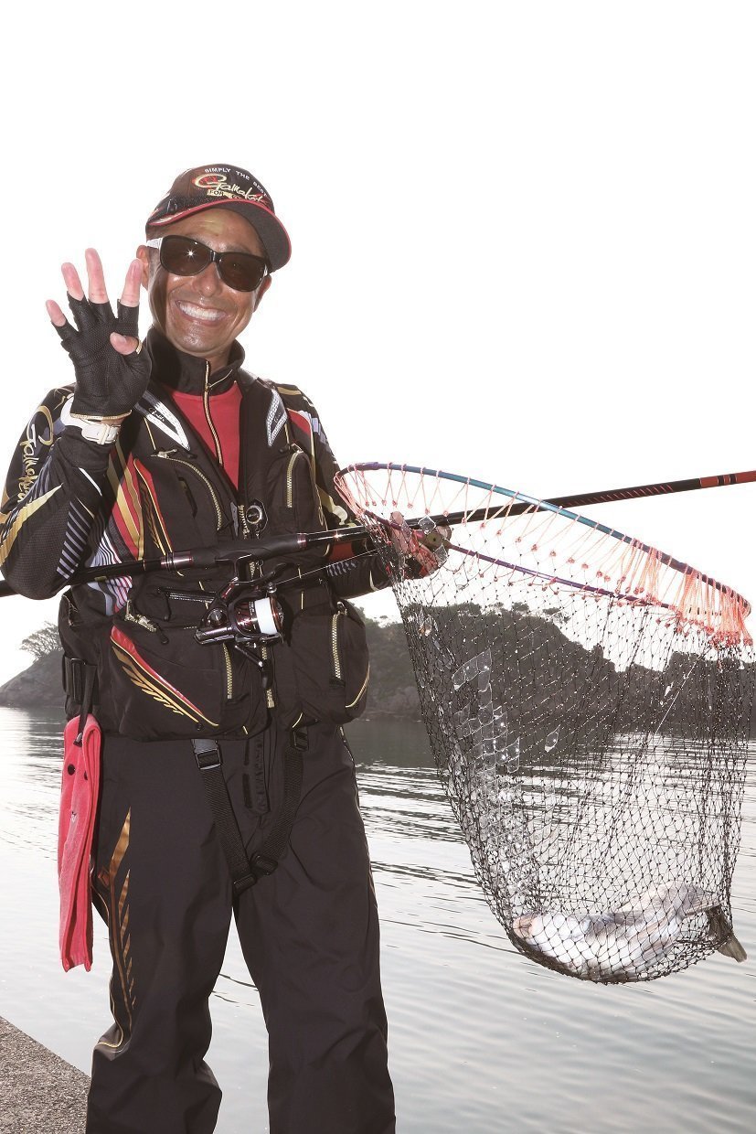 - 人気アーティストでスゴ腕アングラー・MONGOL800髙里悟さんが「がま磯スーパープレシード1.5号5.0m」の高操作性を生かして強風下の愛媛・日振島で大型グレを引きずり出した。