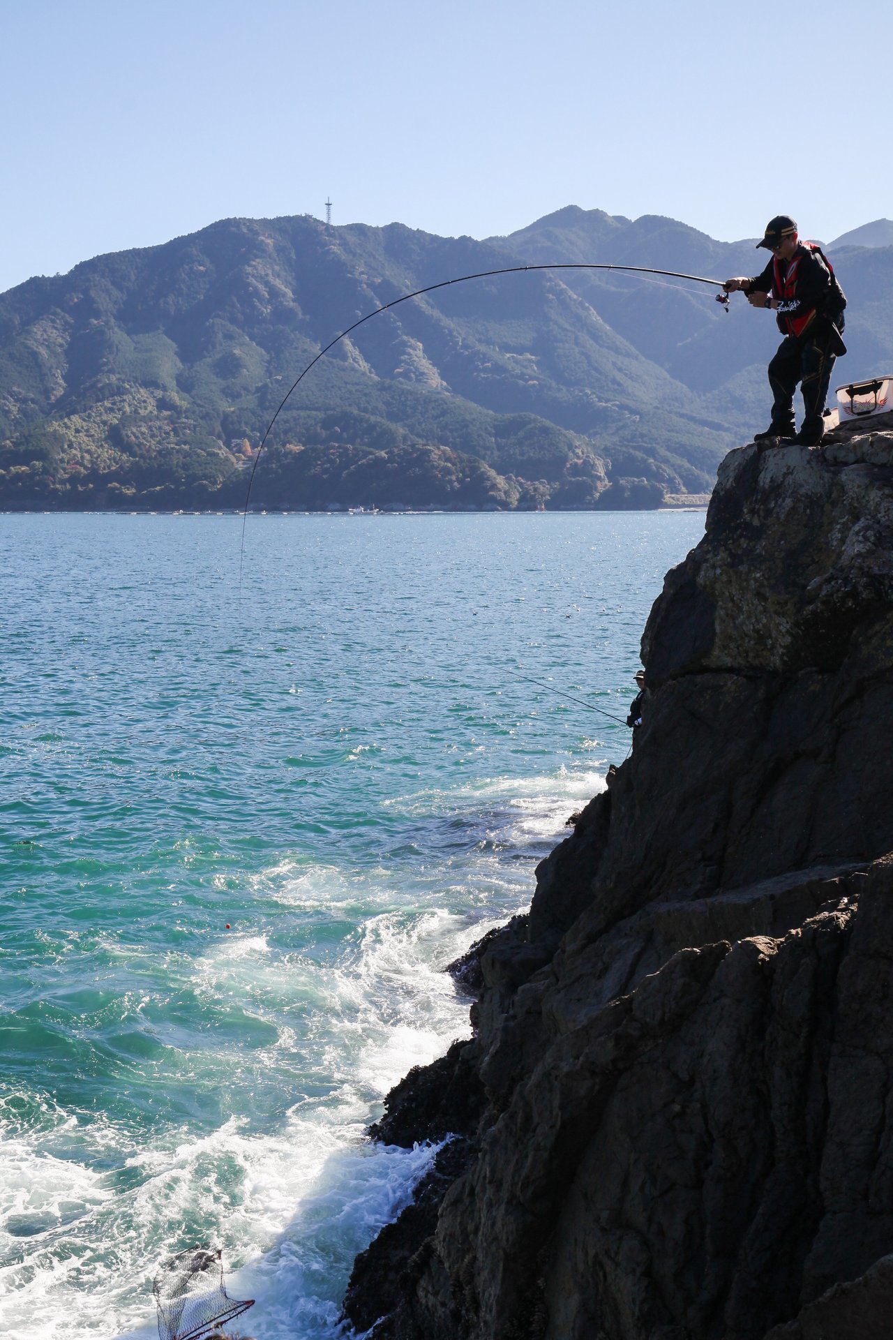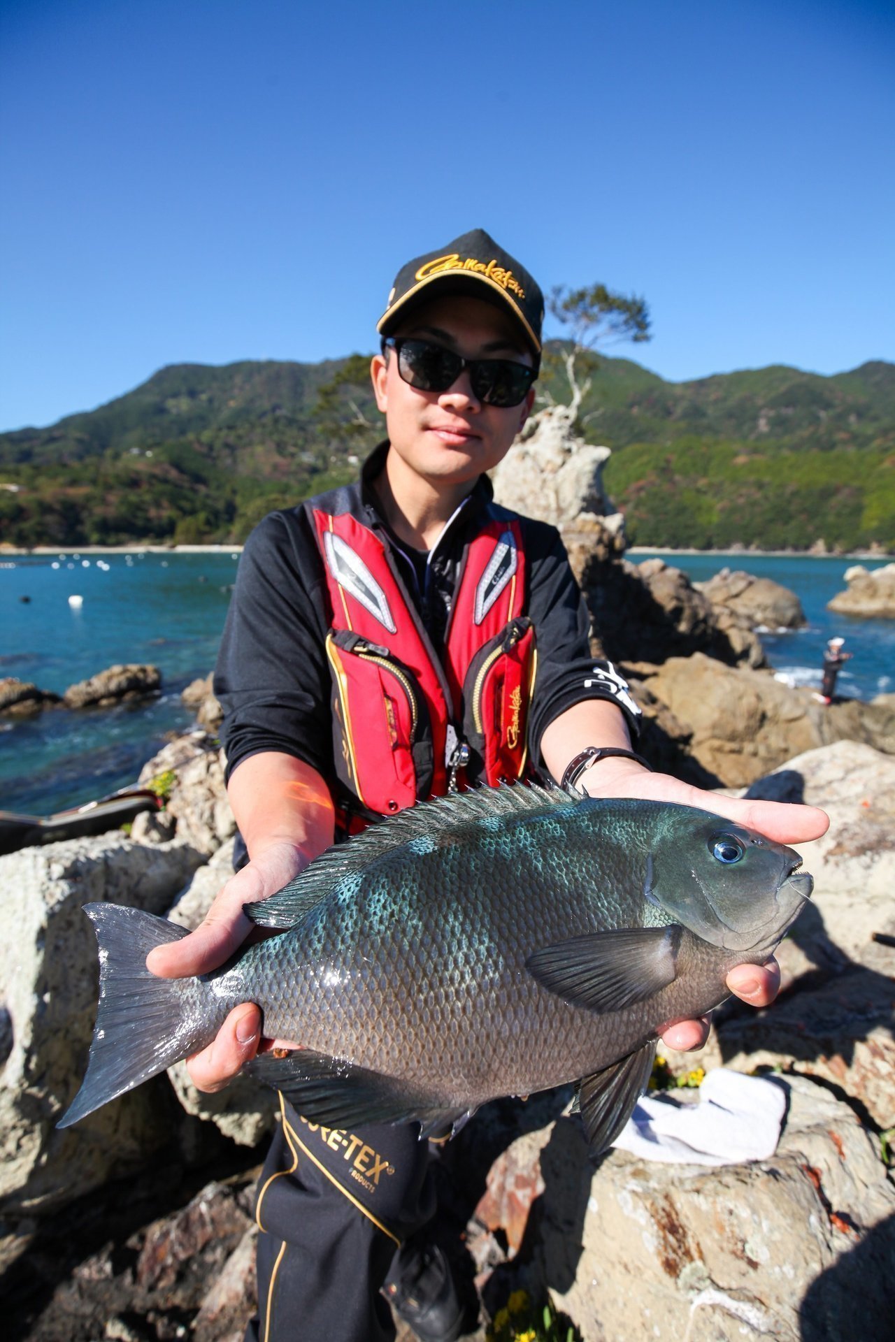 当日はウネリの影響で沖磯への渡礁ができず、湾内の釣り場での実釣となった。