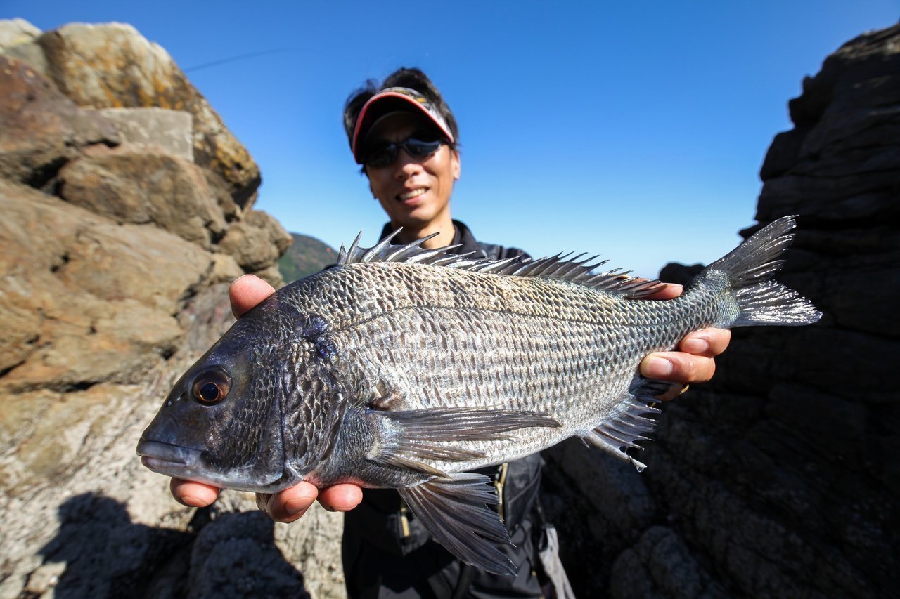 荒れ模様の沖とは一転して波気のない状況の中、名手たちは良型のグレやチヌを相手にスーパープレシードの性能をチェック。