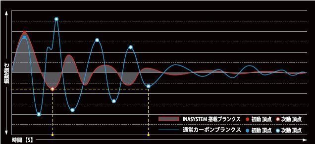 初動の振幅は約60%減少、時間にして約1/3のスピードで小さくなるという驚異の数値を実現した設計こそが、スーパープレシードを構成する重要メソッドの「INASYSTEM(イナシステム)」である。